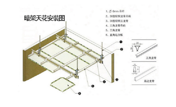 暗架天花板以優質鋁合金板材為基材,面板均采用我公司專業的平整拉伸和模壓成形等加工工藝處理成型,具有加工精度高、外形穩定,表面平整度高等特點。暗架天花板板面平整,棱線分明,拼縫細密,吊頂系統體現出整齊、大方、富貴高雅、視野開闊的外觀效果。暗架天花板具備阻燃、防腐、防潮的優點,而且裝拆方便,每件板均可獨立拆裝,方便施工和維護。如需調換和清潔吊頂面板時,可用磁性吸盤或專用拆板器快速取板,也可在穿孔板背面覆加一層吸音面紙或黑色阻燃棉布,能夠達到一定的吸音標準。