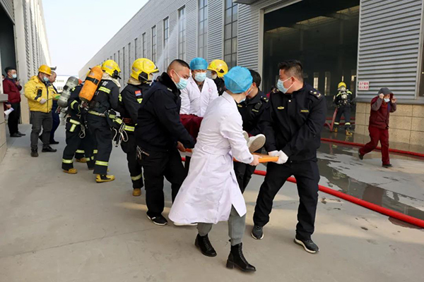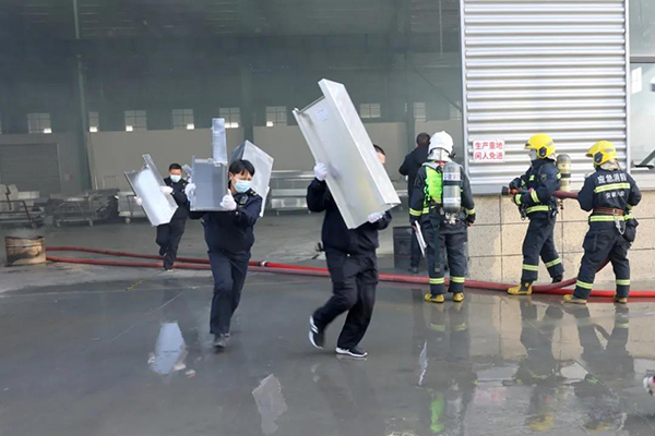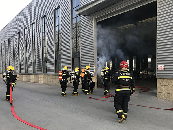 演練當天,由安徽鑫翊新材料有限公司企業立即啟動《安徽鑫翊新材料有限公司綜合應急預案》,同時攜帶救援滅火設備開展自救。